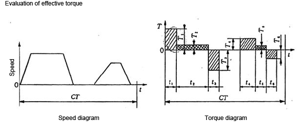 When the servomotor moves like figure below pattern, the effective torque (Tt ) of 1 cycle is achieved by the following equation.