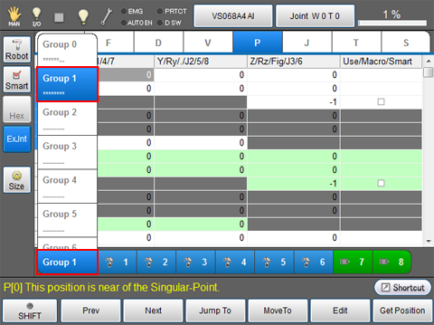 Press [Group 0] to display a list of Arm group.