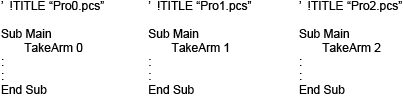 In this example, Pro1 acquires the arm group 1 by TakeArm command.