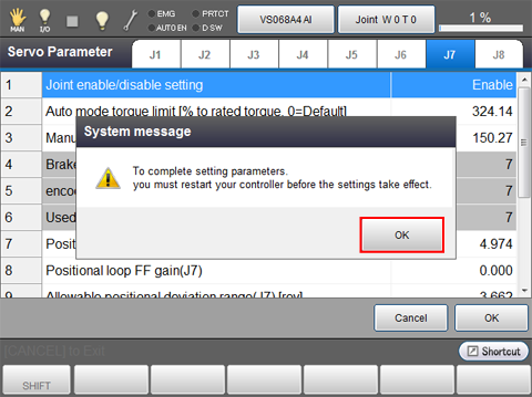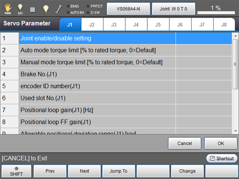 Press [F5 Servo Parameter] on the Joint Setting window.