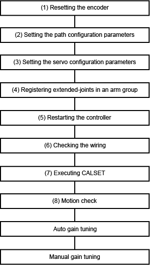 Set the motion conditions of the extended-joints. (Speed, acceleration, motion limits, etc.)