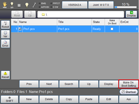 Select a program to be checked, then press [Make On Boot Setting] in the Program List window.
