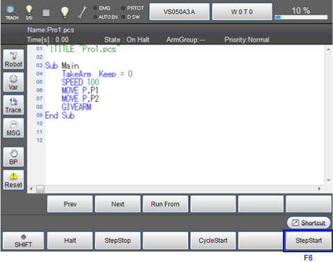 If the [OK] button is released while step start is running, the program will be suspended state.