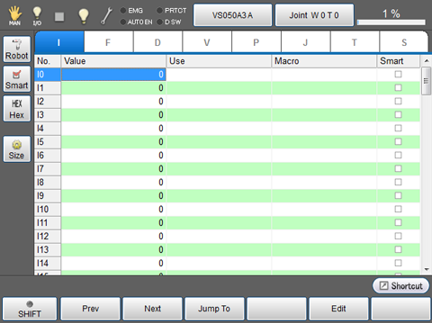 - When you try to display variables whose INDEX portion is macro name, such as I[slotnum]. When INDEX portion is "?", value does not appear even if variable types are I type, F type, D type or DEFIO type. Press [Edit/Display] button to adjust the target INDEX.