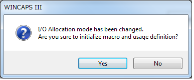In the dialog box below, press Yes if there is no problem with initialization of macro and usage definition; press No if there is a problem. Pressing either one changes the allocation.