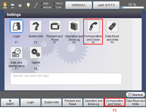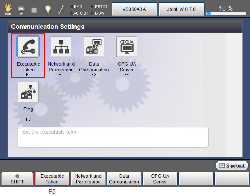Press [F5 Communication and Token].