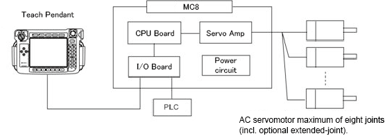 The MC8 is a controller that controls the positioning mechanism driven by an AC servo motor, such as X-Y table.