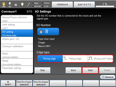 This section describes how to set the I/O port number that is connected to the sensor detecting workpiece, and the edge type.