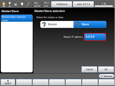 If you operate with two or more robots, you need to setup both a master controller and a slave controller, respectively.