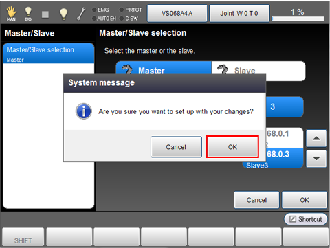 - Check that the joint setting of the slave controller is set to "Disable". If not, change the setting.