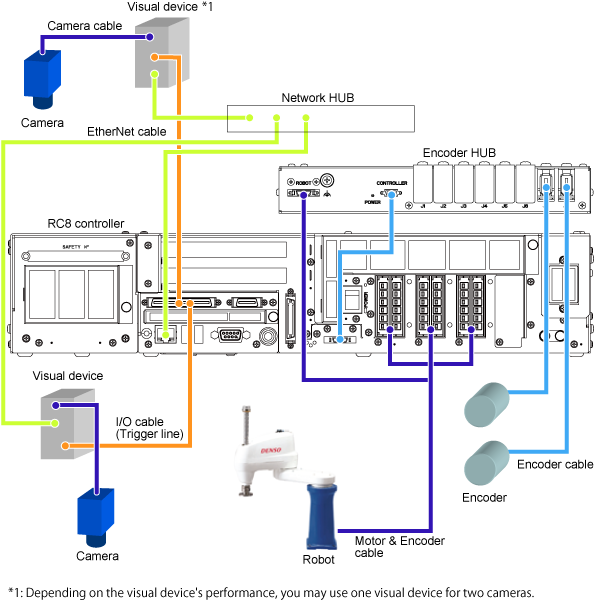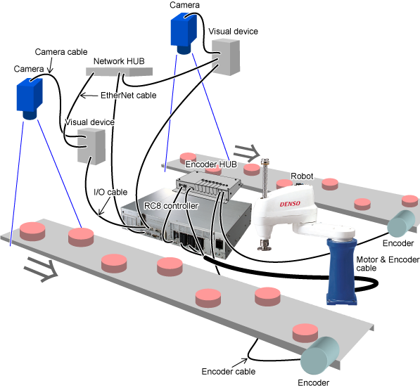 Configuration of the Conveyor Tracking System with Two Conveyors and One Robot