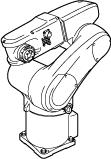 Before transportation, set the robot in a transport position as shown at right by manually moving the second, third and fourth axes.