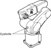 - Before running the robot unit, be sure to remove the eyebolts. Otherwise, the robot arm will strike against those eyebolts.