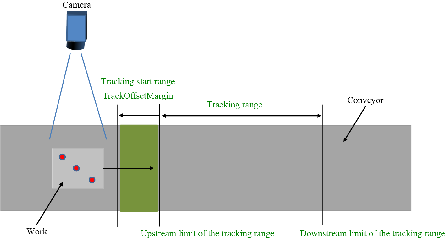 TrackMinimumIntervalLength、 TrackStartArea、 TrackCurStartArea、 TrackTargetPos、 Commands for Conveyor Tracking