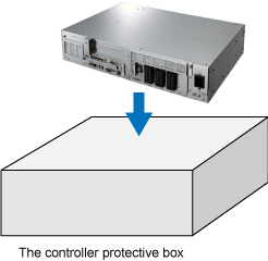 The controller protective box, which is equivalent to IP54, protects a controller from dust and fluid by containing a controller. (not contained in UL-Listed robot systems)