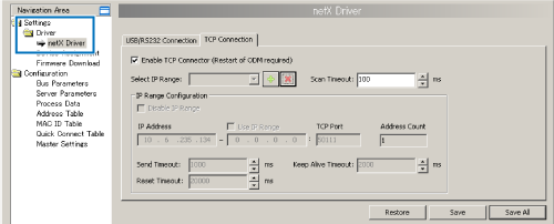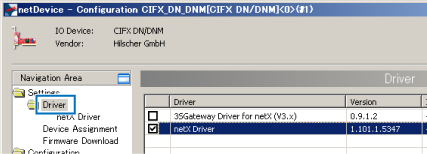 From the tree in the left side of the display, click [Setting] - [Driver], and then select the [netX Driver] checkbox.