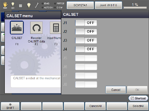 CALSET is complete when the user moves each axis of the robot to the CALSET position by hand and use the teach pendant to have the controller recognize the position information.
