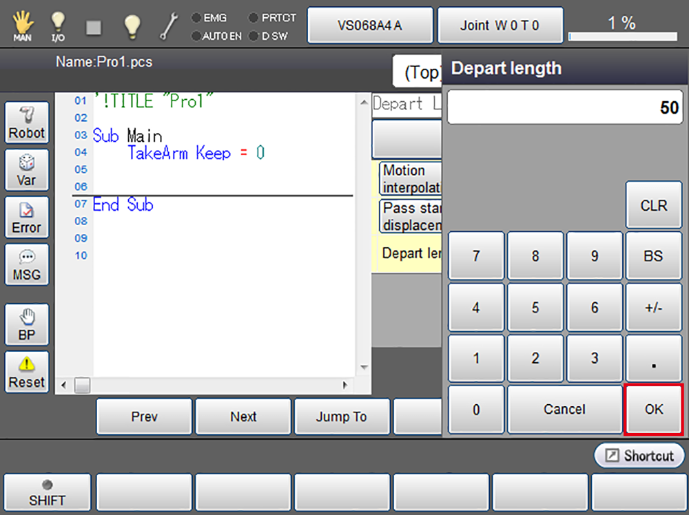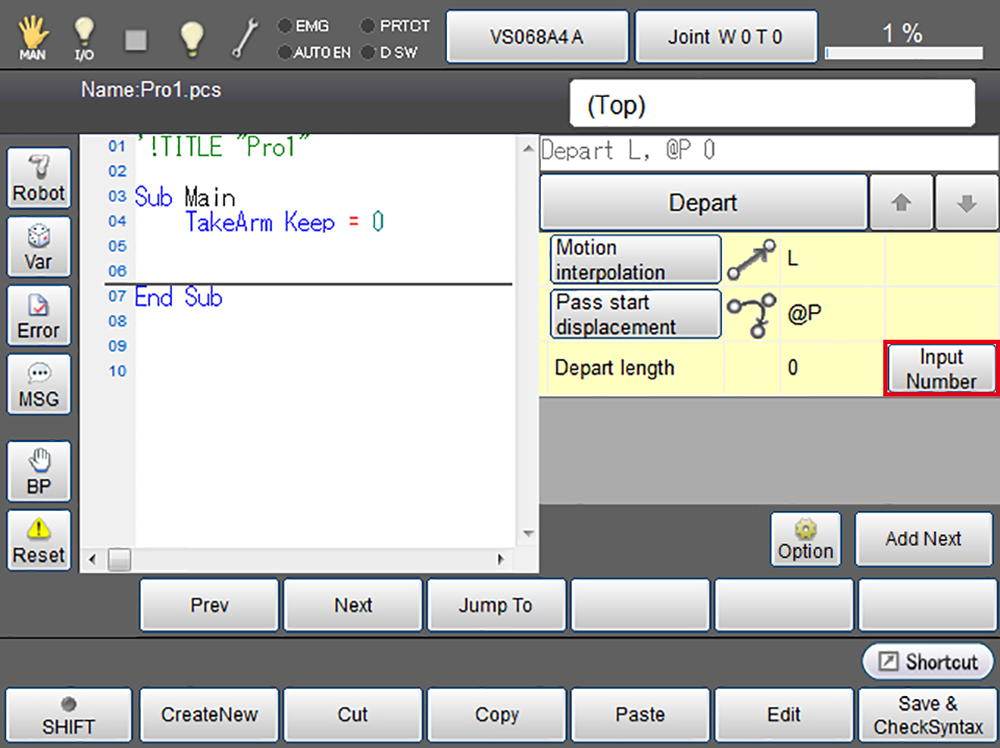 Set the depart length. In the Depart length line, press the [Input Number] button.