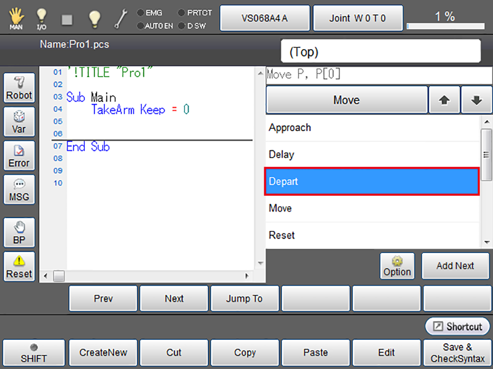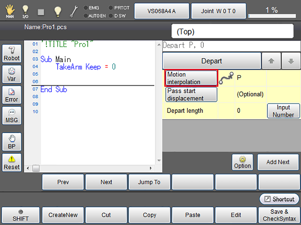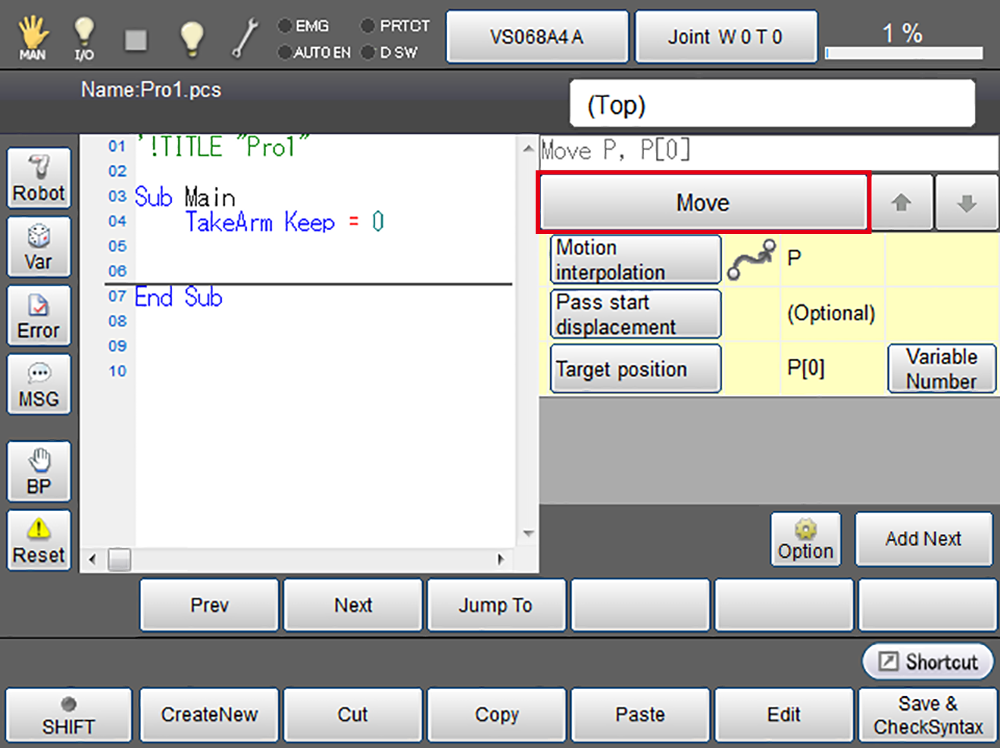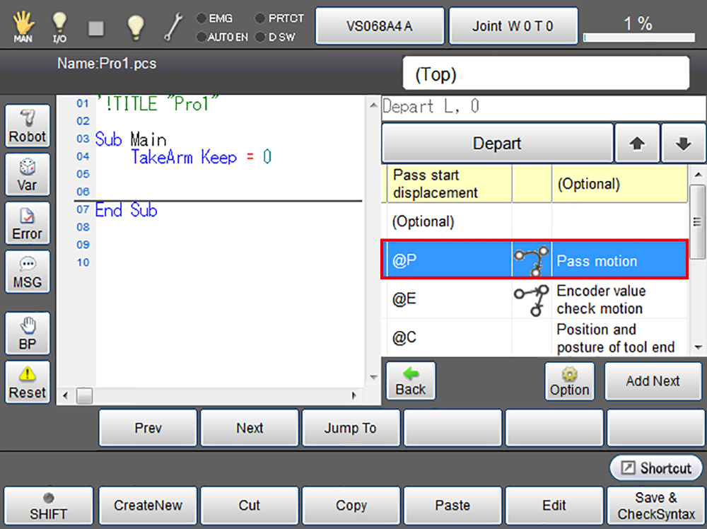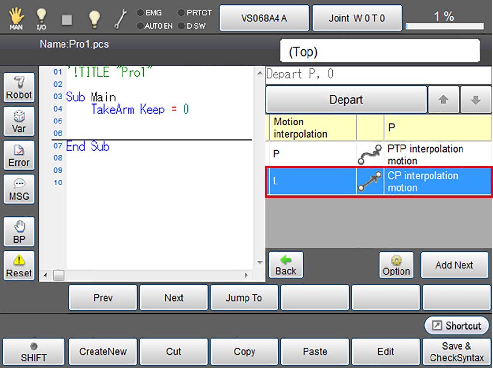 With this function, some commands are automatically entered.Since this function automatically inputs necessary parameters at once, you can complete programming without writing whole command lines.This function is available only for the manual mode operationin Version 1.8.* or later.