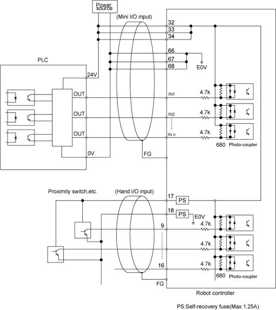 - In addition to PLCs, proximity switches and relay contacts can be directly connected to the input terminals of the robot controller.