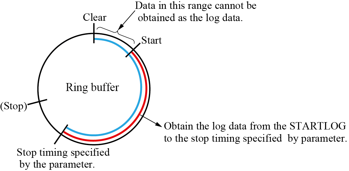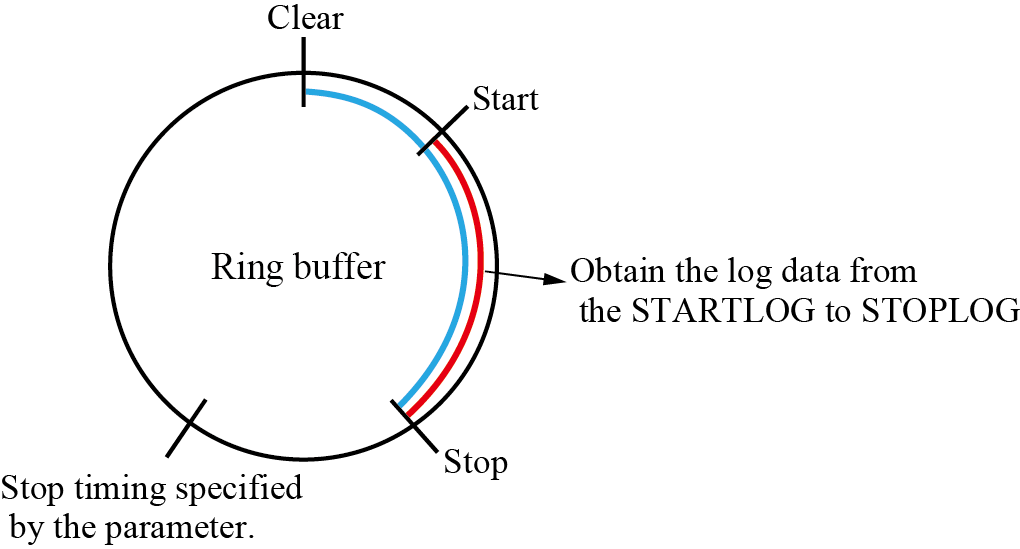 Note that the CLEARLOG starts the data logging only, and does not mean the start of the log data you can obtain. The range of log data you can obtain from the ring buffer is explained below.